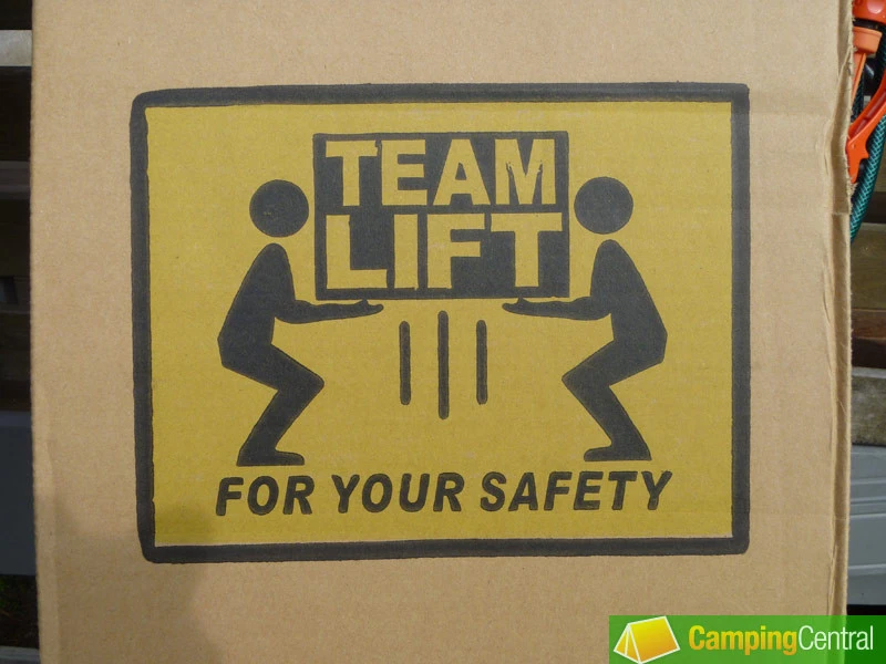 I ordered the OZtrail Deluxe Gazebo on Tuesday afternoon – a run-of-the-mill, complication free ordering process, paying through PayPal. Early Friday afternoon a courier delivered it. Just one courier mind you, despite the clearly indicated ‘team lift’ recommendation. One long, thin cardboard box. Quite heavy – about 20kg according the web site, which sounds about right.